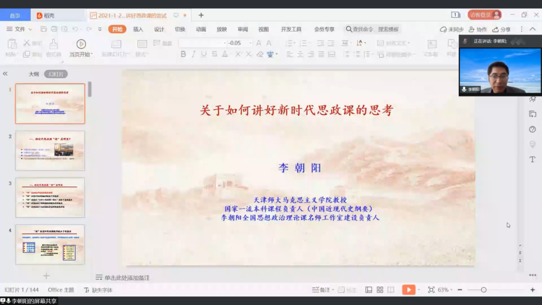 1月29日上午,马克思主义学院邀请天津师范大学马克思主义学院副院长、博士生导师李朝阳教授作为首场嘉宾做客明德讲堂,为师生作了《关于如何讲好新时代思政课的思考》线上专题讲座。学院全体教师、校内兼课教师及习近平新时代中国特色社会主义思想青年学习会和园丁社的学生们聆听了讲座。