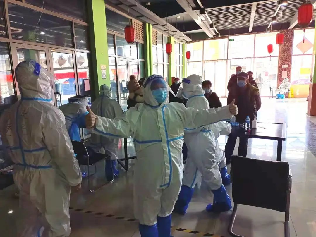 我和疫情第一次近距离接触是1月11日晚。当时,我陪同社区工作人员引领医护人员进楼入户为特殊居民做核酸检测。用时3个半小时,我们小组完成了约50位居民的核酸检测。除了行动不便的老人孩子之外,这些特殊居民大多是居家隔离的密接者或次密者。因此,在人生当中第一次穿上防护服带来的小小兴奋激动之后,我心里还是很紧张的。但最终圆满完成任务以后,那种满满的成就感充盈心间,抵消了最初的紧张和奔波一晚上的劳累。