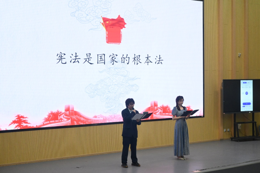在第十二个国家宪法日到来之际,为深入学习贯彻习近平法治思想,贯彻落实党的二十届四中全会精神,由校团委、马克思主义学院主办、明法社承办的“学宪法 讲宪法”知识竞赛决赛于12月4日晚在D102成功举办。马克思主义学院副院长刘西明、明法社社团指导教师及我校百余名学生参加了本次活动。